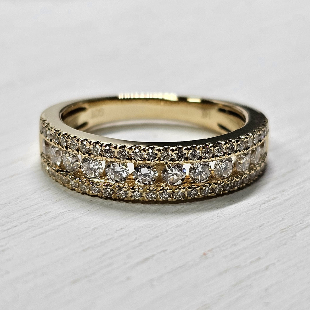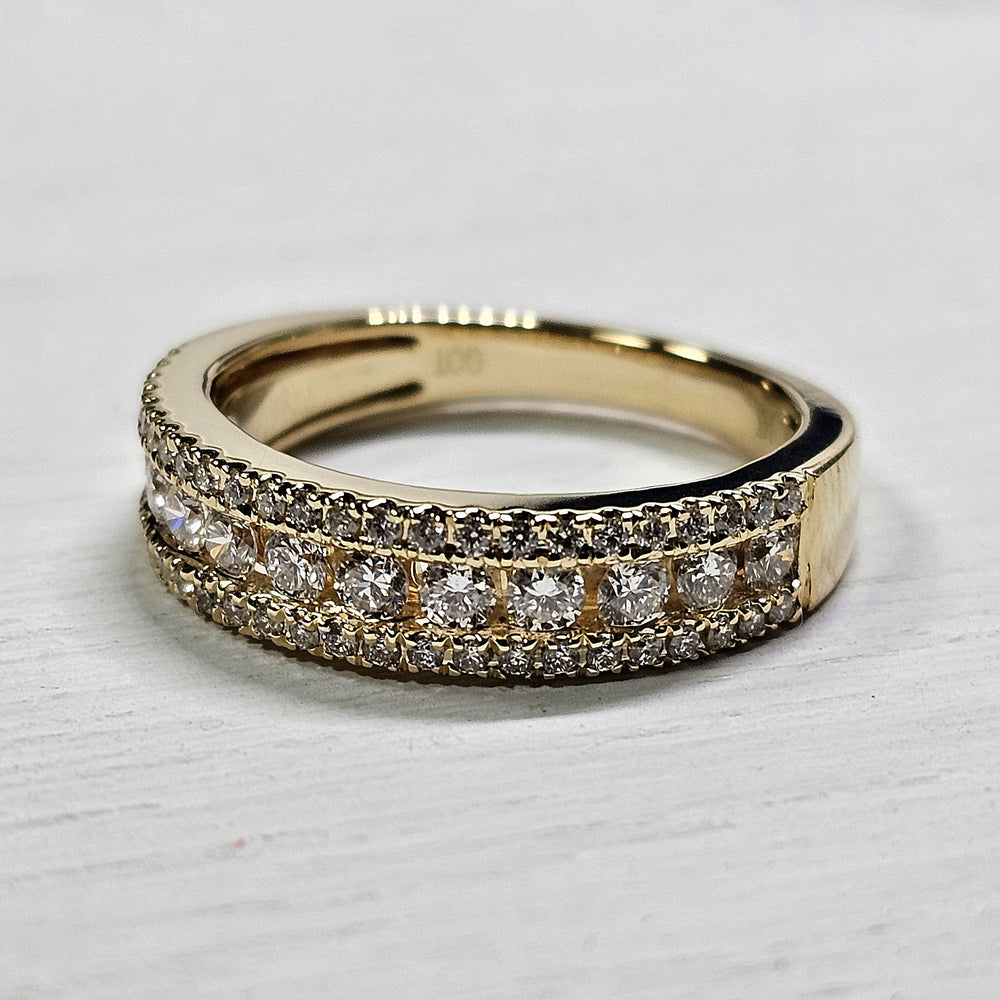 14k Yellow Gold .75ctw 3 Row Diamond Band
