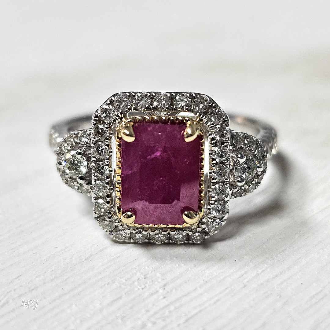 14k White Gold 0.75 Ctw Diamond and 1.72 Ct Ruby Ring