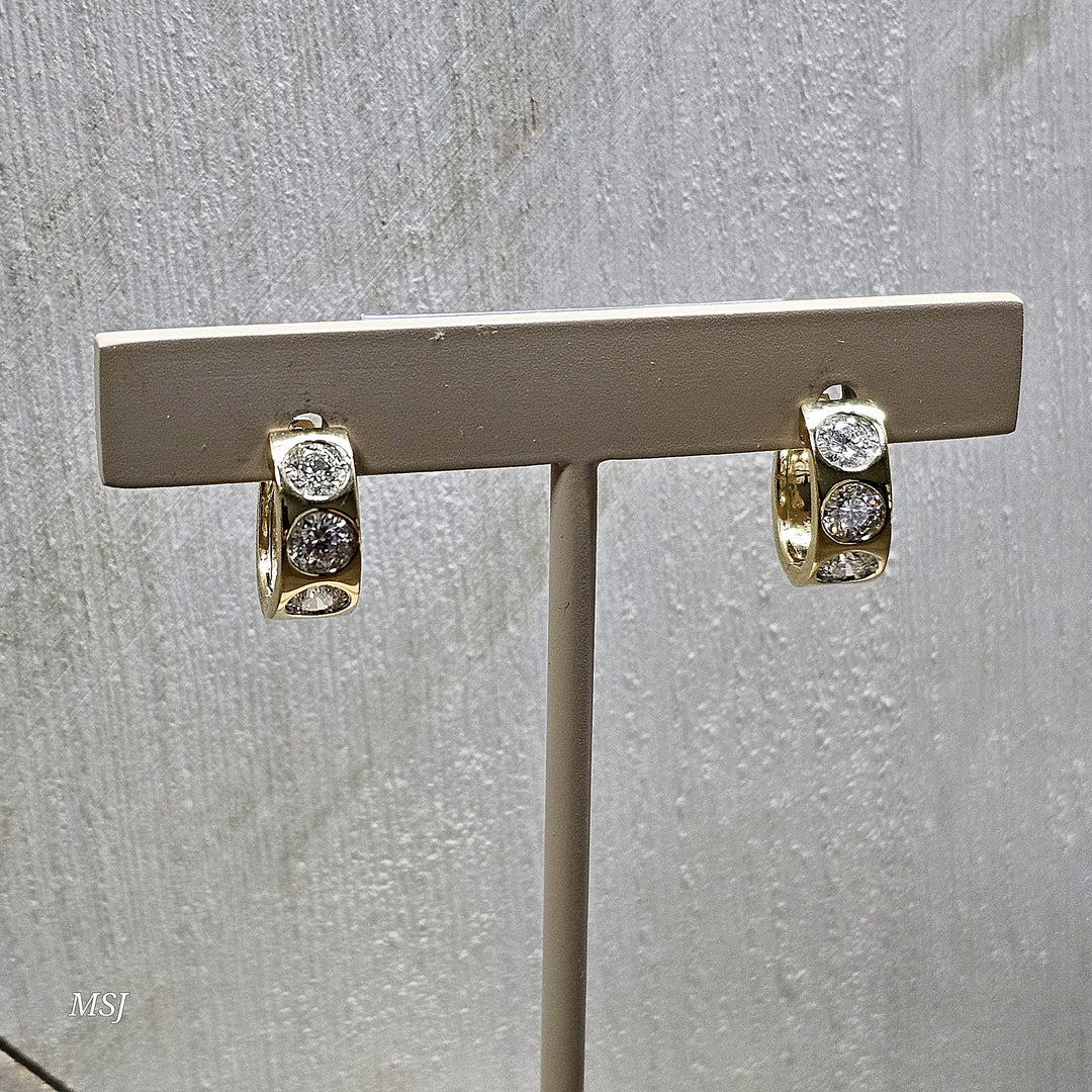14k Yellow Gold 0.99 Ctw Diamond Bezel Set Hoop Earrings