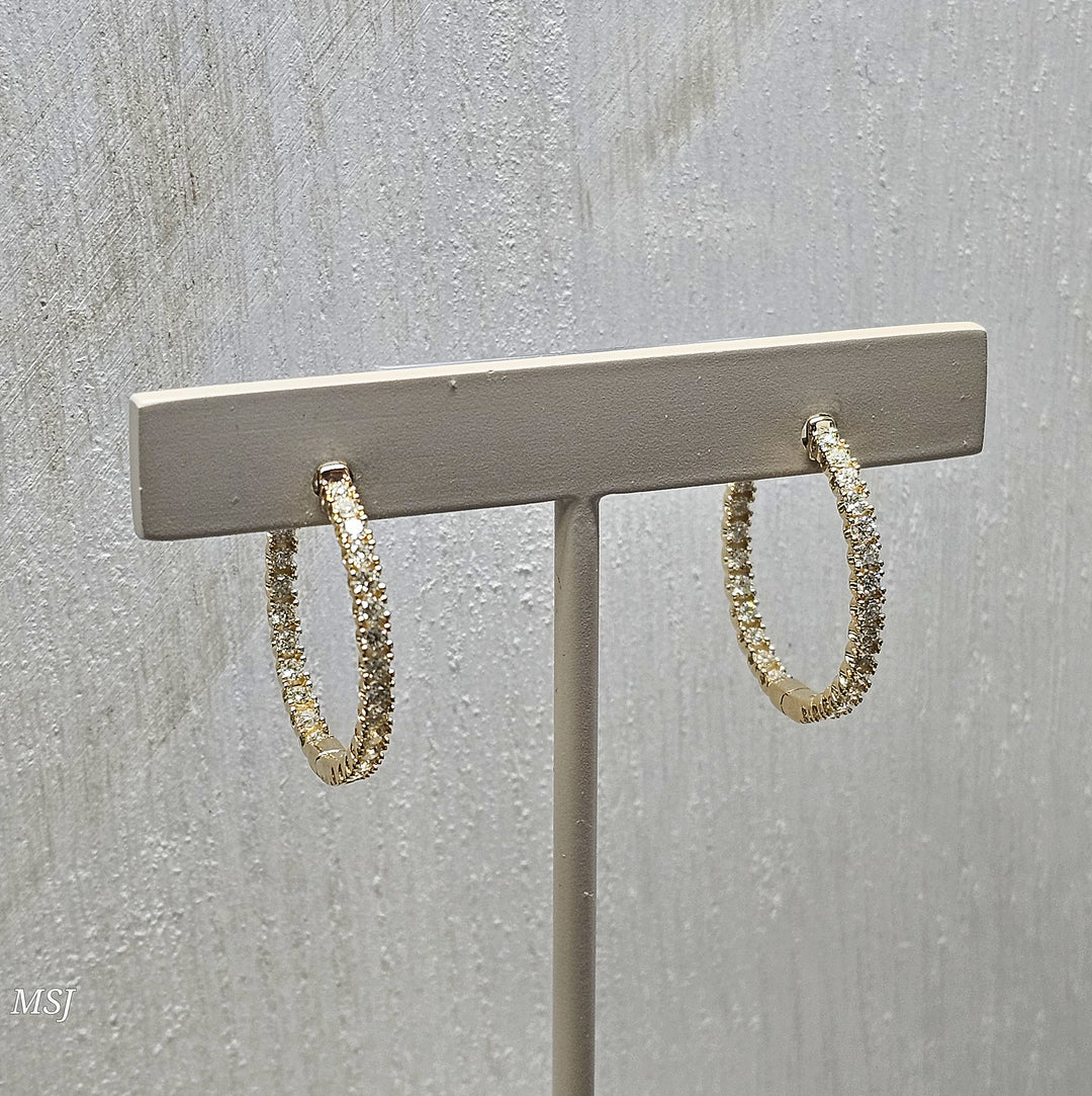 14k Yellow Gold 1.07ctw Inside Out Diamond Hoop Earrings