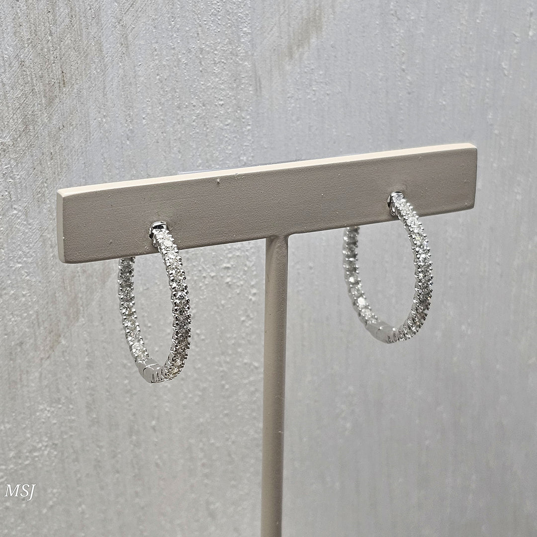 14k White Gold 1.44ctw Inside Out Diamond Hoop Earrings
