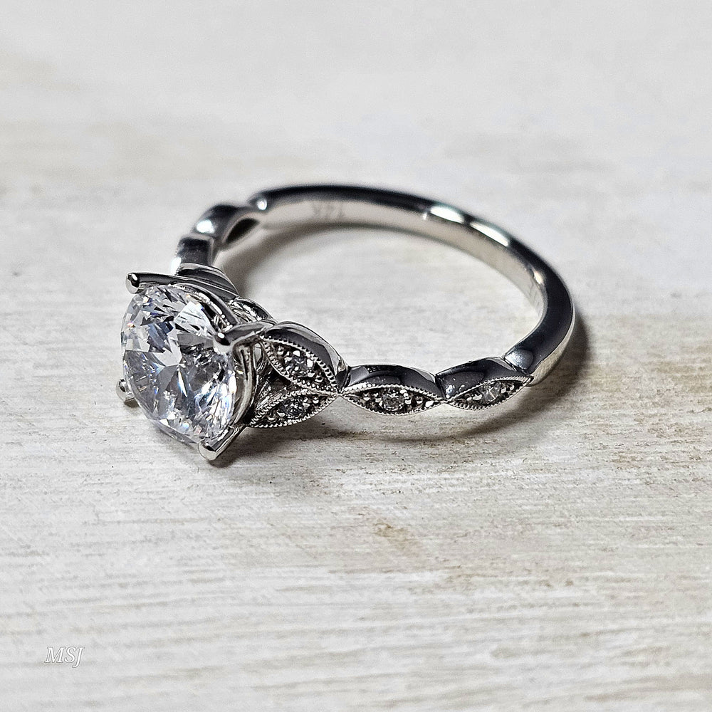 14k White Gold 0.08 Ctw Diamond Floral Design Engagement Mounting