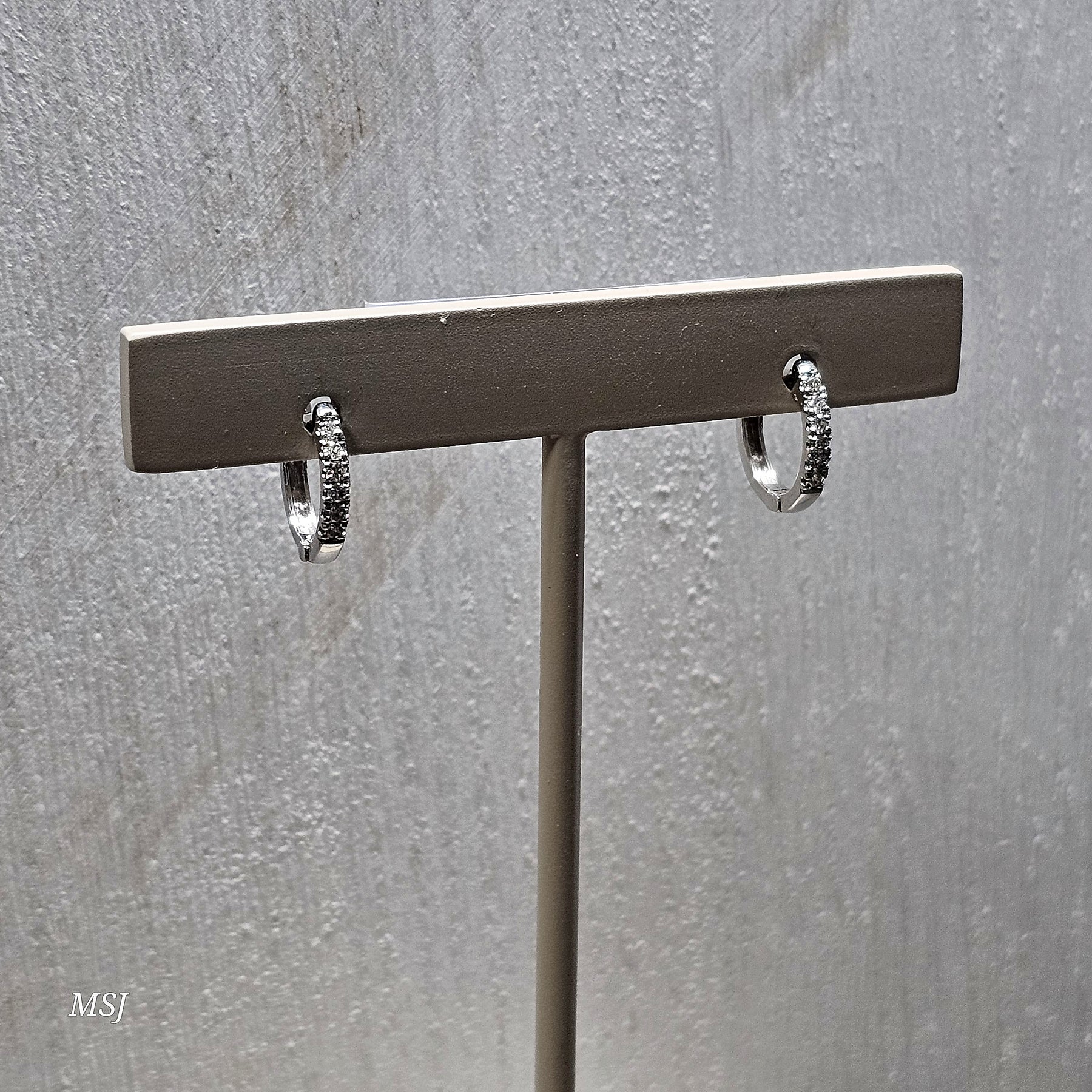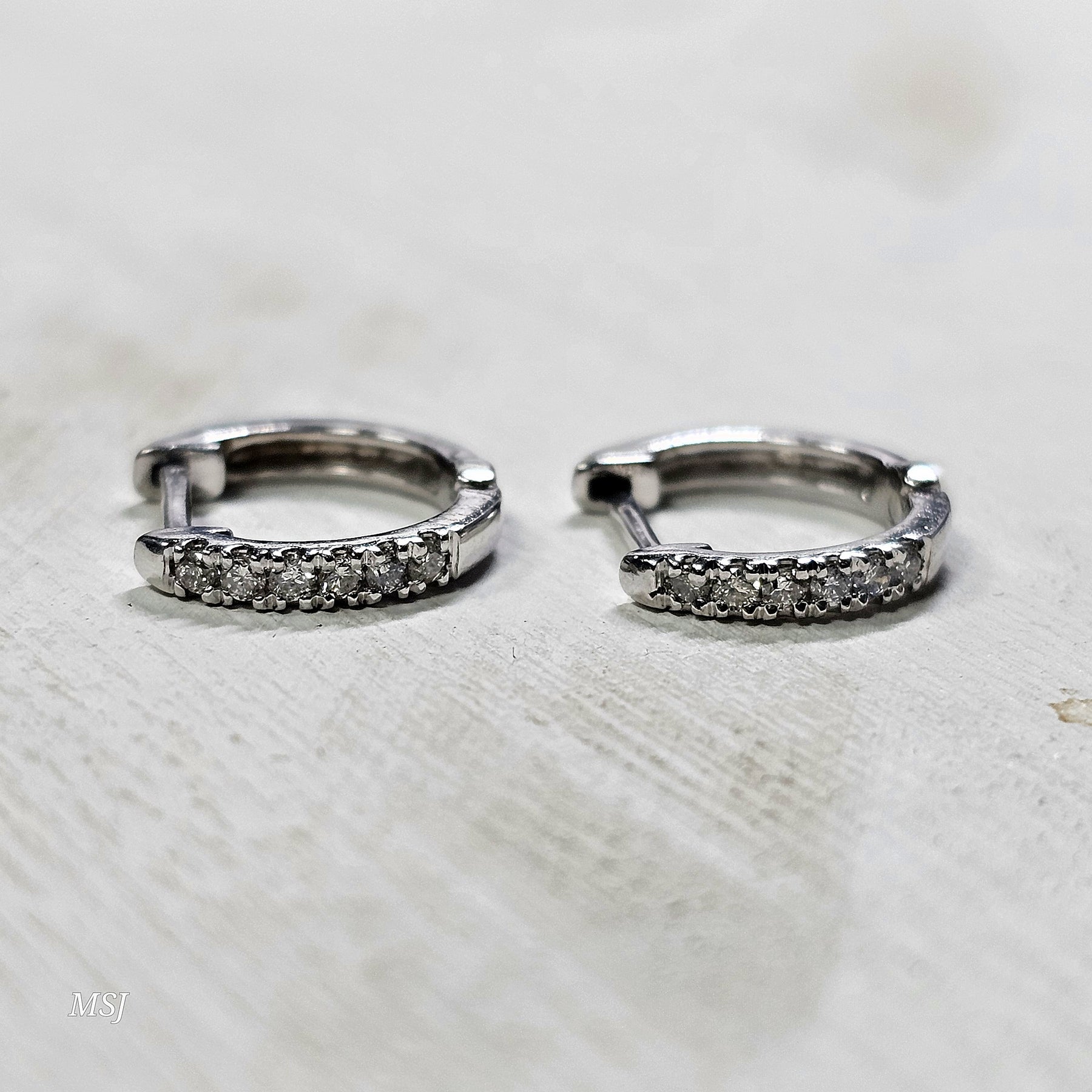 These petite huggie hoop earrings are crafted in 10k white gold and accented with .12ct total weight of round diamonds for refined, everyday sparkle. Designed to hug the ear comfortably, their sleek silhouette offers timeless versatility and effortless elegance. Perfect worn alone or layered, these diamond huggie earrings are a classic addition to any jewelry collection.