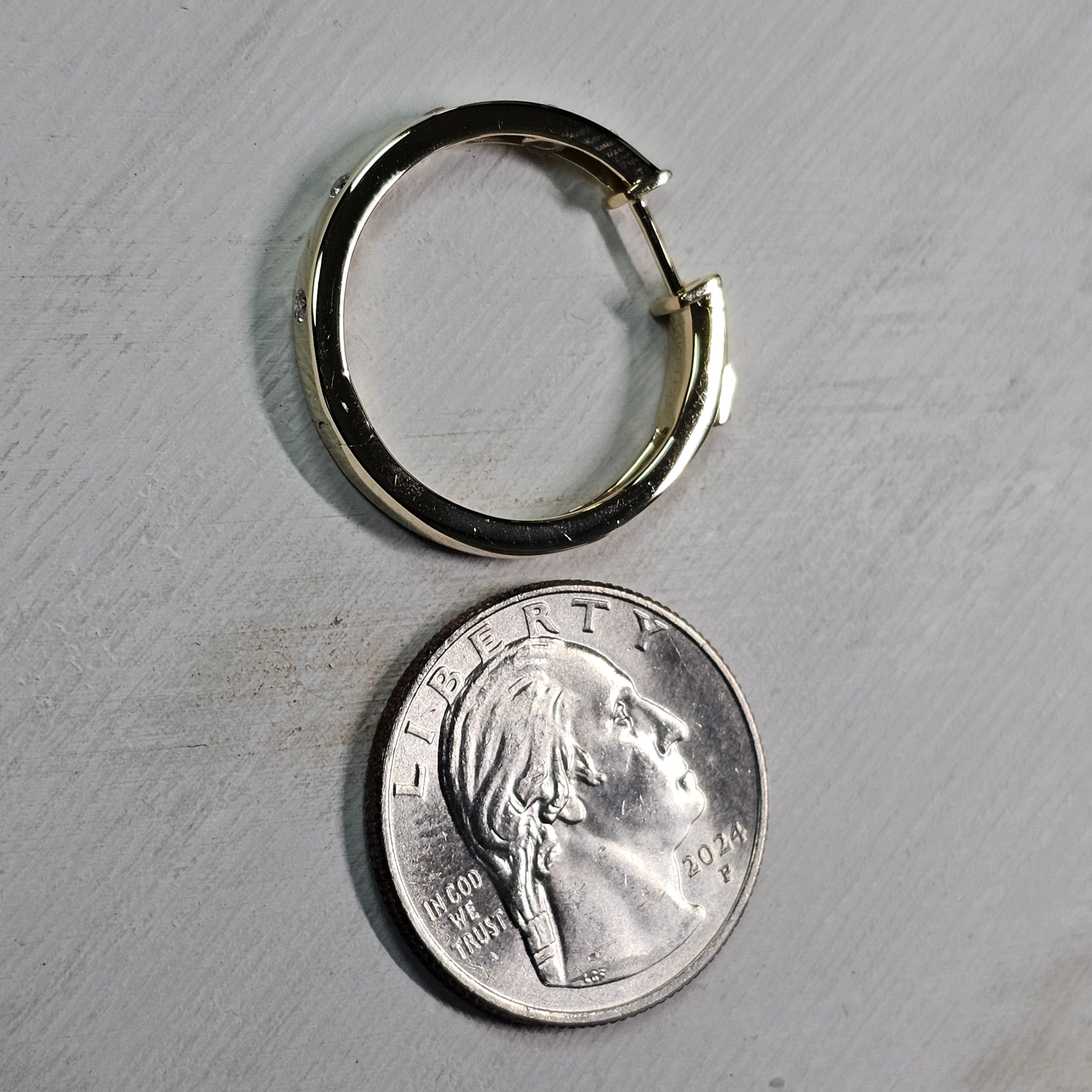 Add effortless sparkle to your collection with these 14K yellow gold diamond hoop earrings, designed with modern simplicity and everyday luxury in mind. Crafted in rich, polished 14K yellow gold, the front of each hoop features round lab-grown diamonds that are flush set and evenly spaced for a clean, contemporary look.