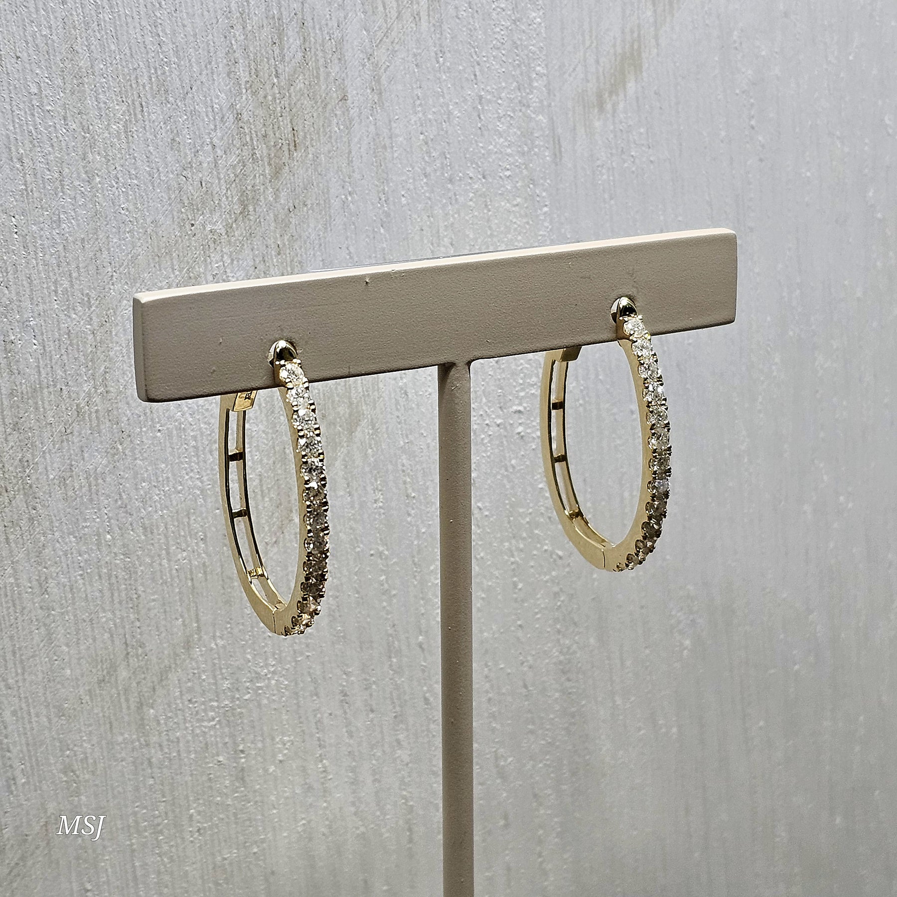 These traditional oval diamond hoop earrings are beautifully crafted in rich 14k yellow gold and designed for timeless, everyday elegance. Each hoop is adorned with round brilliant-cut diamonds, expertly prong set to maximize sparkle and light reflection. With a total diamond weight of 1.00 carat, these earrings offer the perfect balance of brilliance and classic sophistication.