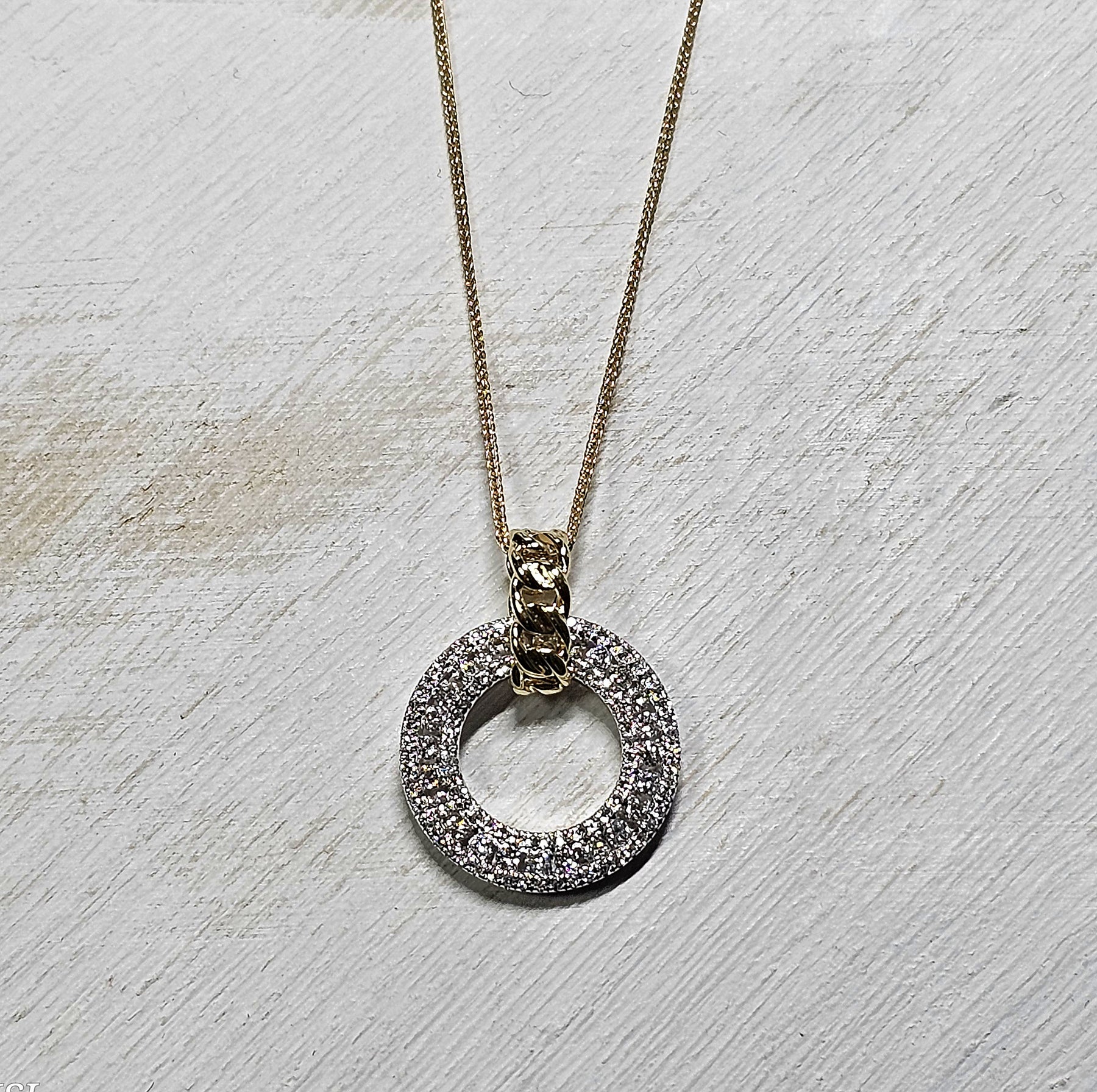 This 14k yellow gold Circle of Love pendant shines with three rows of 112 round diamonds totaling 0.50 ctw. Elegant and timeless, the fully diamond-adorned circle offers brilliant sparkle from every angle. Suspended from a matching 14k yellow gold chain with a secure lobster clasp, this meaningful pendant is perfect for everyday wear, layering, or gifting.