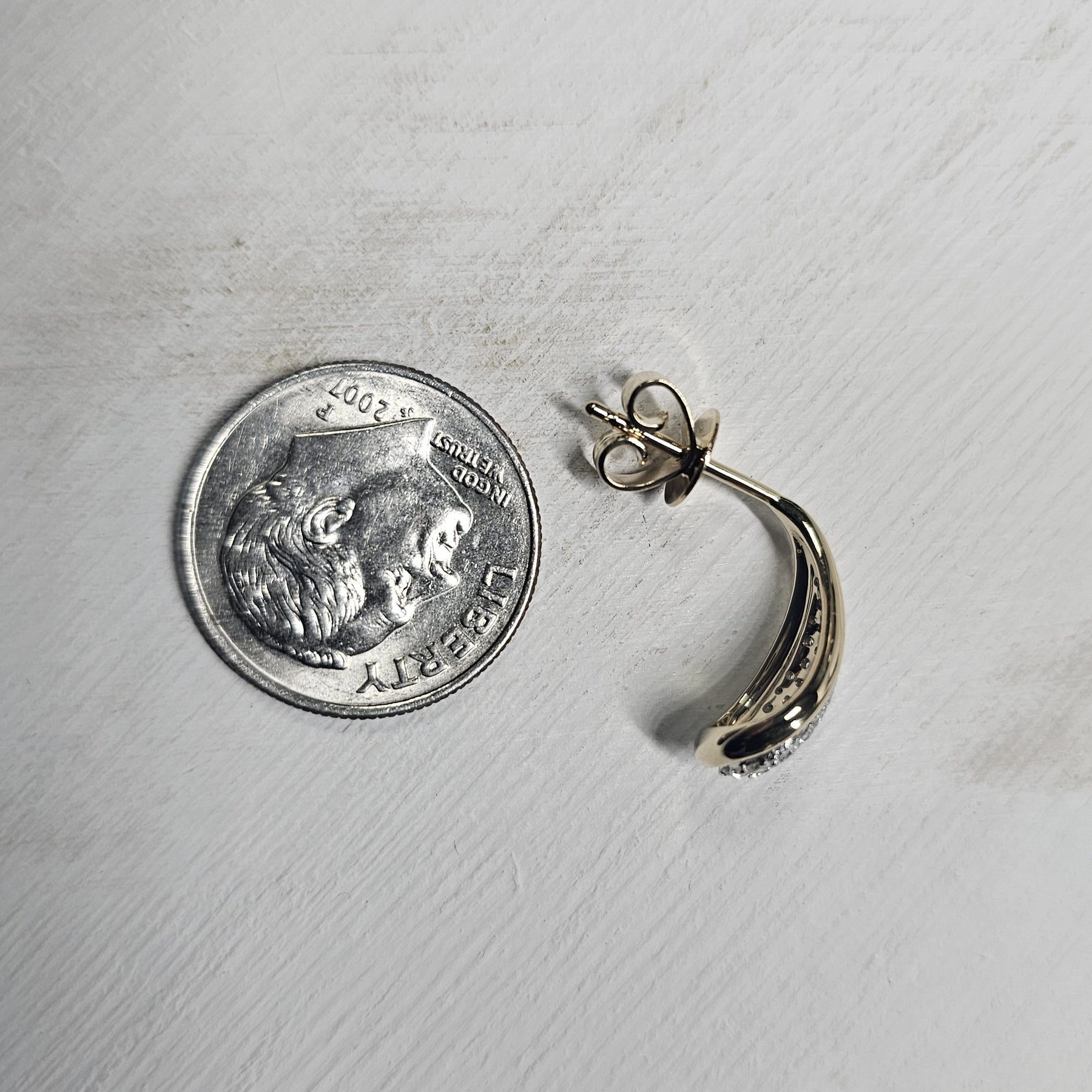 These unique leaf petal style earrings feature a graceful, organic shape paved with 72 round brilliant cut diamonds for sparkling detail. The total diamond weight of .50cts adds elegant shimmer while maintaining a lightweight, comfortable feel. Designed with upgraded heavy friction posts and backs, they offer added security and durability for everyday wear. Perfect for dressy occasions or a subtle touch of glam, these diamond leaf earrings bring nature-inspired beauty and refined craftsmanship to any jewelry collection.