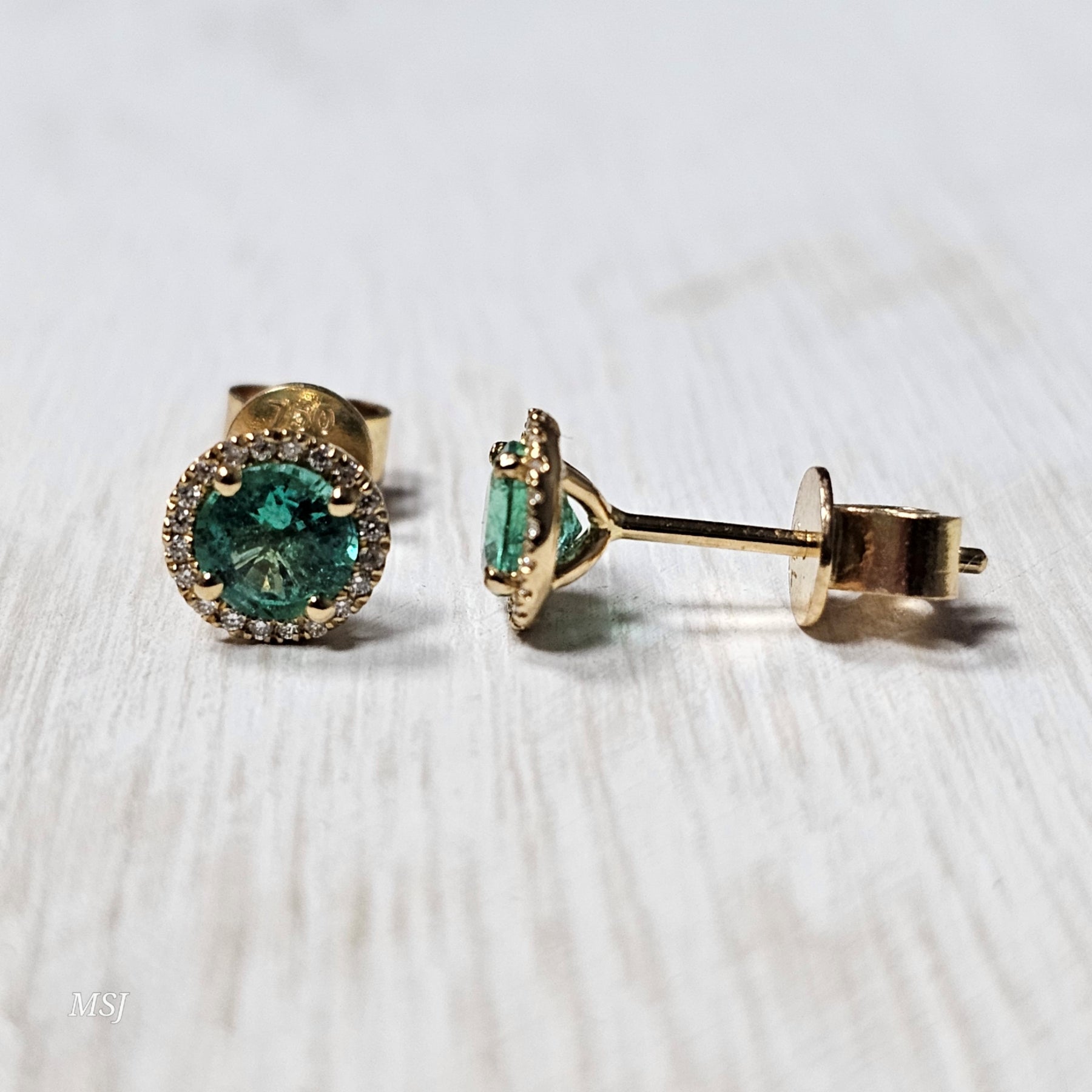 These 18k Yellow Gold Earrings showcase the lush beauty of 1.91 carats of vibrant green emeralds, elegantly accented by 0.08 carats of shimmering natural diamonds. The rich hue of the emeralds pairs perfectly with the warmth of the yellow gold, while the subtle sparkle of the diamonds adds just the right amount of brilliance. Sophisticated and timeless, these earrings are a stunning way to add a touch of luxury and color to any look.