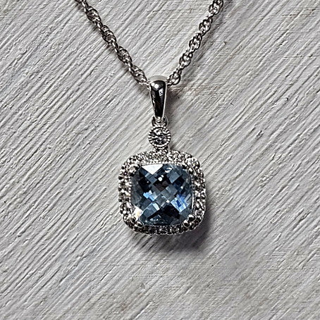14k White Gold 2.24 Ctw Blue Topaz and 0.16 Ctw Diamond Pendant