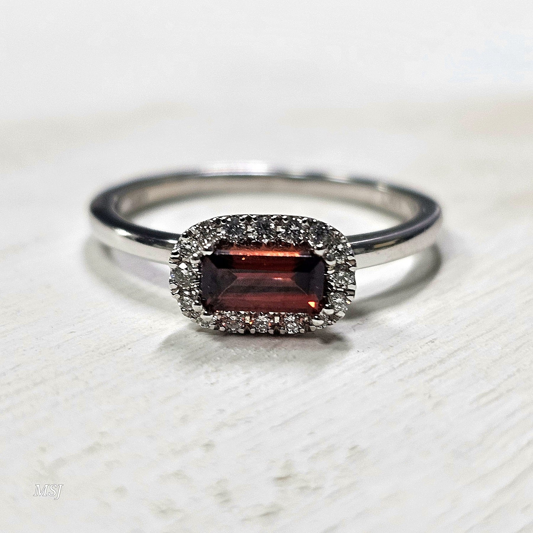 10k White Gold .11ctw Garnet and Diamond Ring