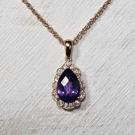 14k Rose Gold 1.53 Ctw Amethyst and 0.15 Diamond Pendant