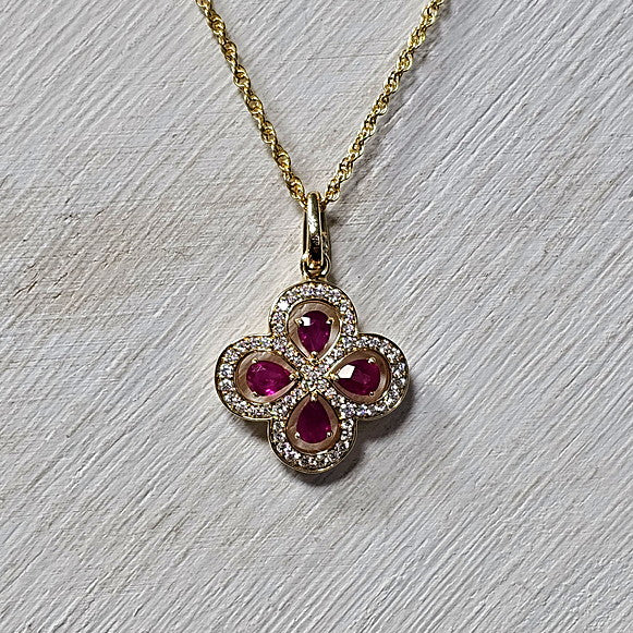 14k Yellow Gold 0.68 Ctw Ruby and 0.28 Ctw Diamond Clover Pendant