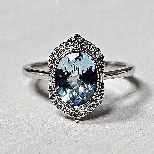 14k White Gold 1.56 Ct Aquamarine and 0.14 ctw Diamond Ring
