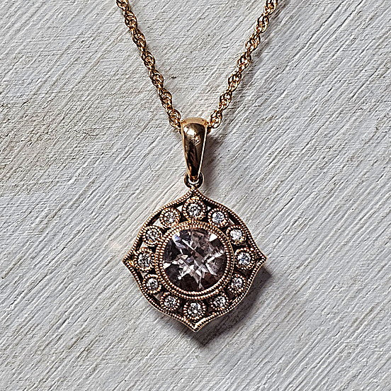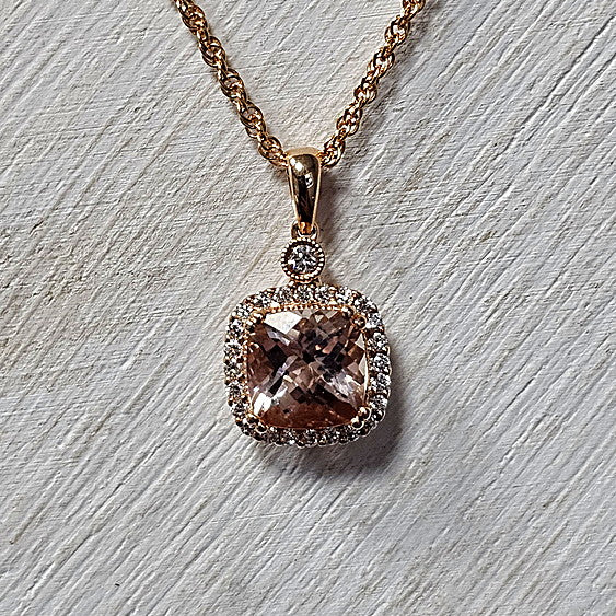 14k Rose Gold 0.98 Ctw Morganite and 0.15 Ctw Diamond Pendant