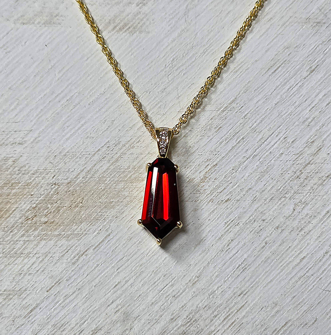 14k Yellow Gold 1.18 Ctw Garnet and 0.02 Ctw Diamond Pendant