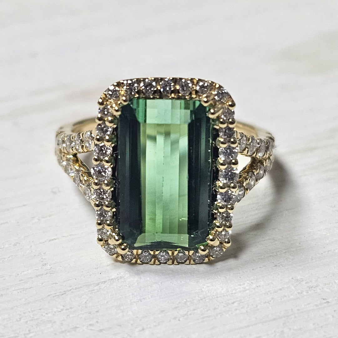 14k Yellow Gold 4.54ctw Green Tourmaline and Diamond Ring