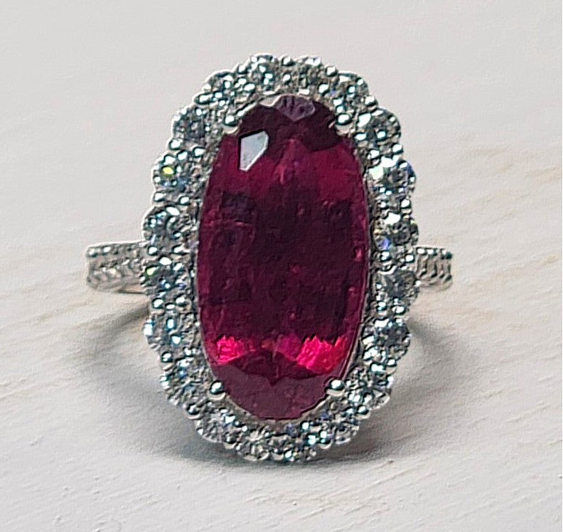 14k White Gold 8.63ctw Rubellite and Diamond Ring