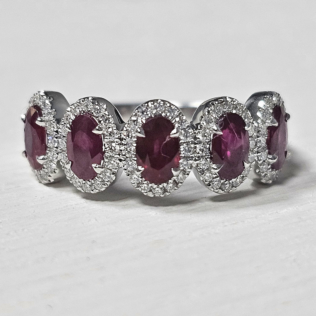 14k White Gold 1.41 ct Ruby and .27 ct Diamond Band