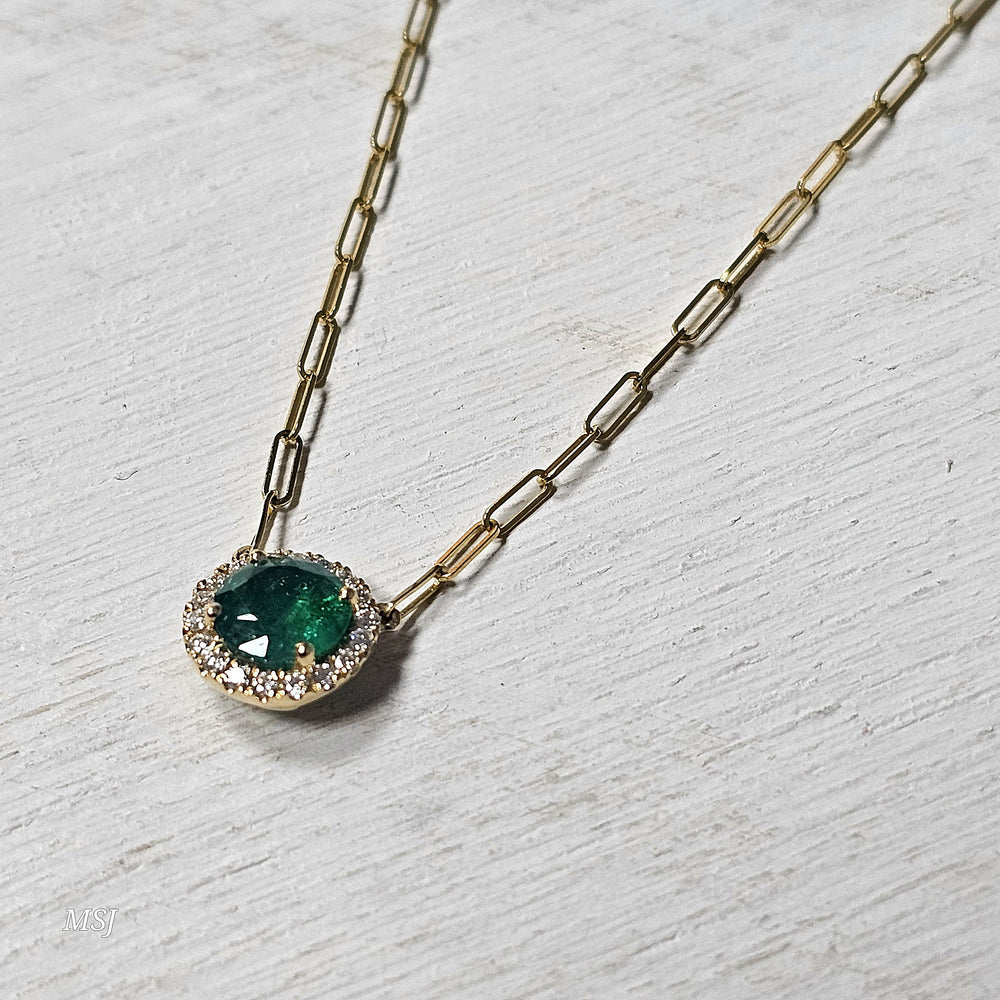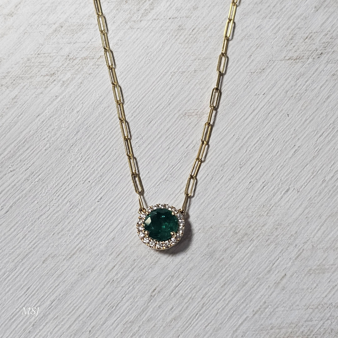 14k Yellow Gold .65ctw Emerald and Diamond Circle Pendant