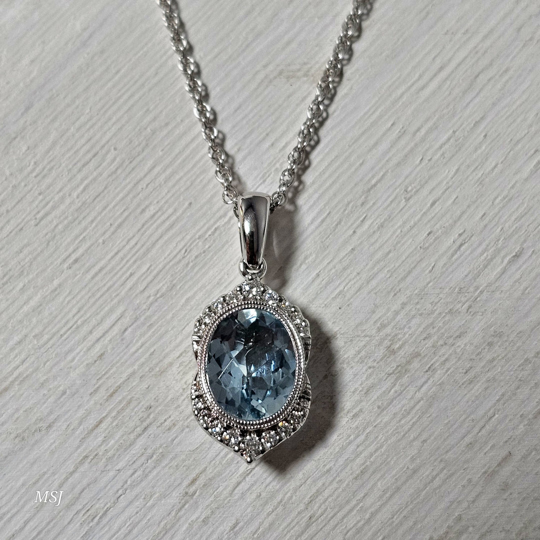 14k White Gold 2.62ctw Blue Topaz and Diamond Pendant