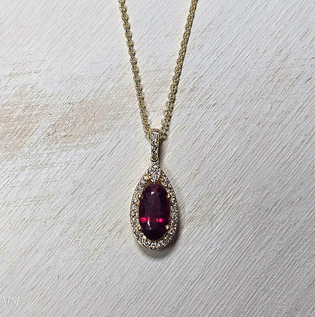 14k Yellow Gold 2.76ctw Rubellite and Diamond Halo Pendant