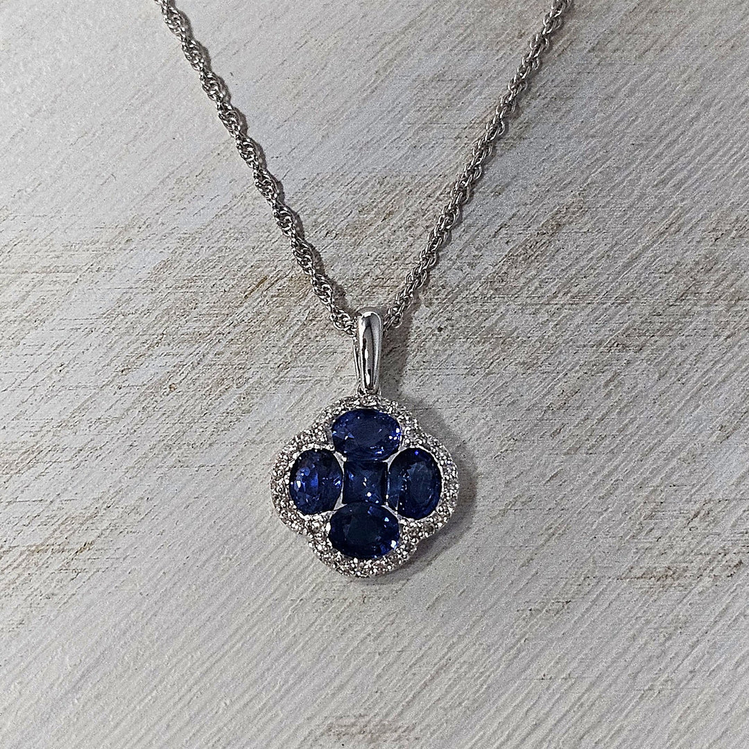 14k White Gold 1.87ctw Sapphire and Diamond Pendant