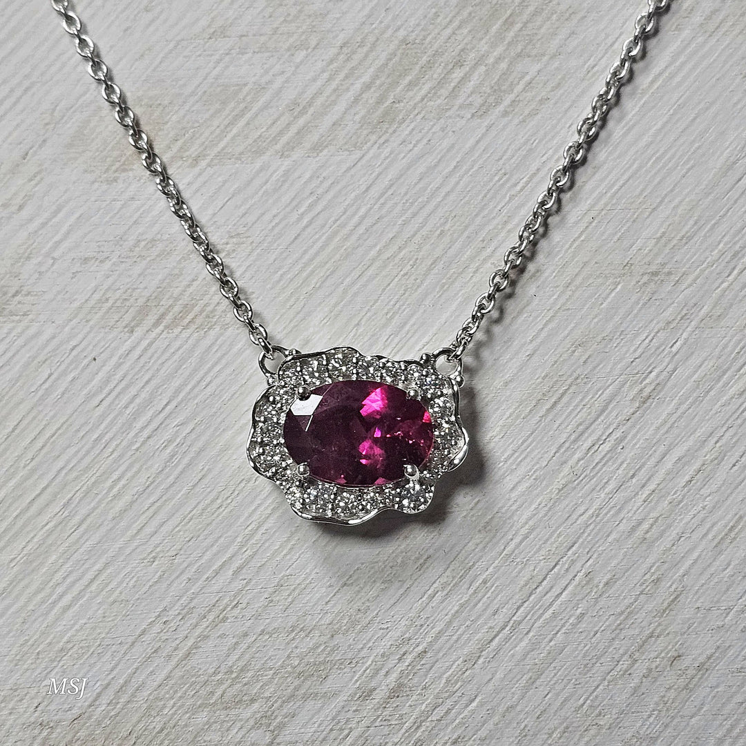 14k White Gold 2.75ctw Rubellite and Diamoond Pendant