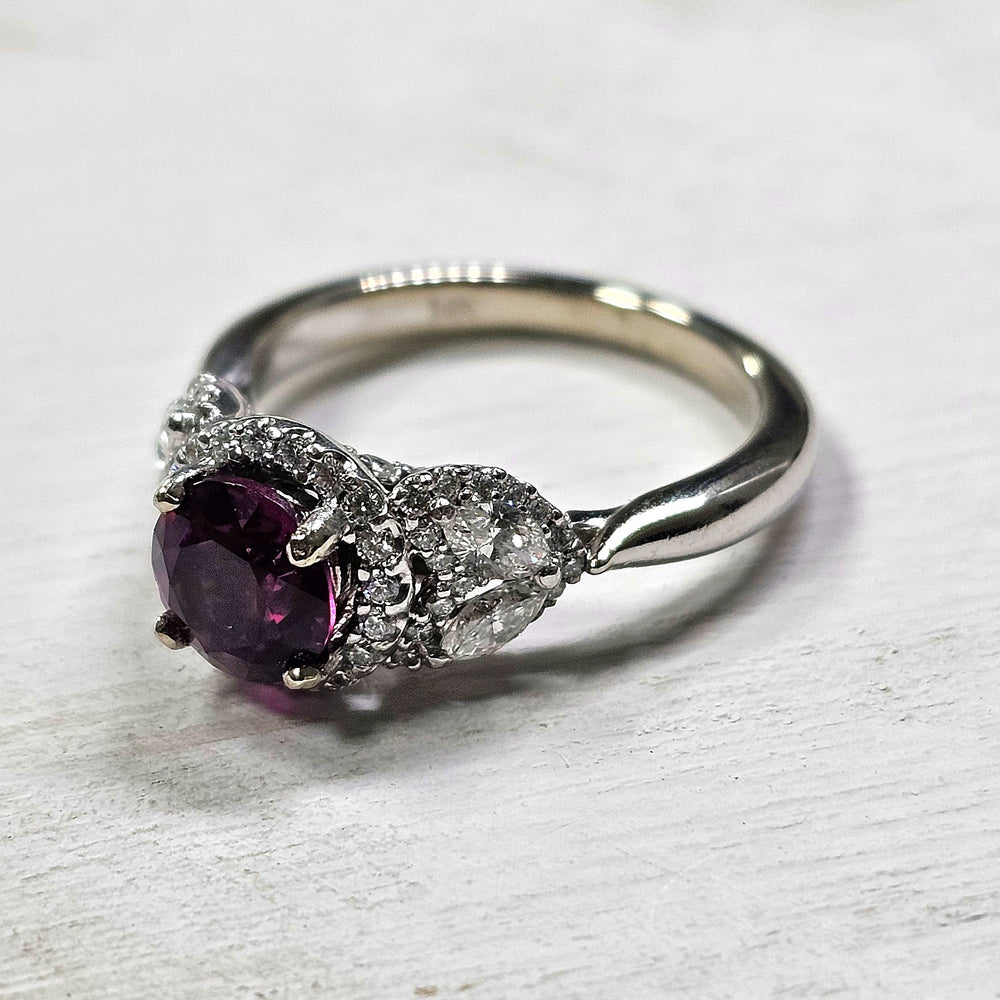 14k White Gold 1.72ctw Rhodolite Garnet and Diamond Ring