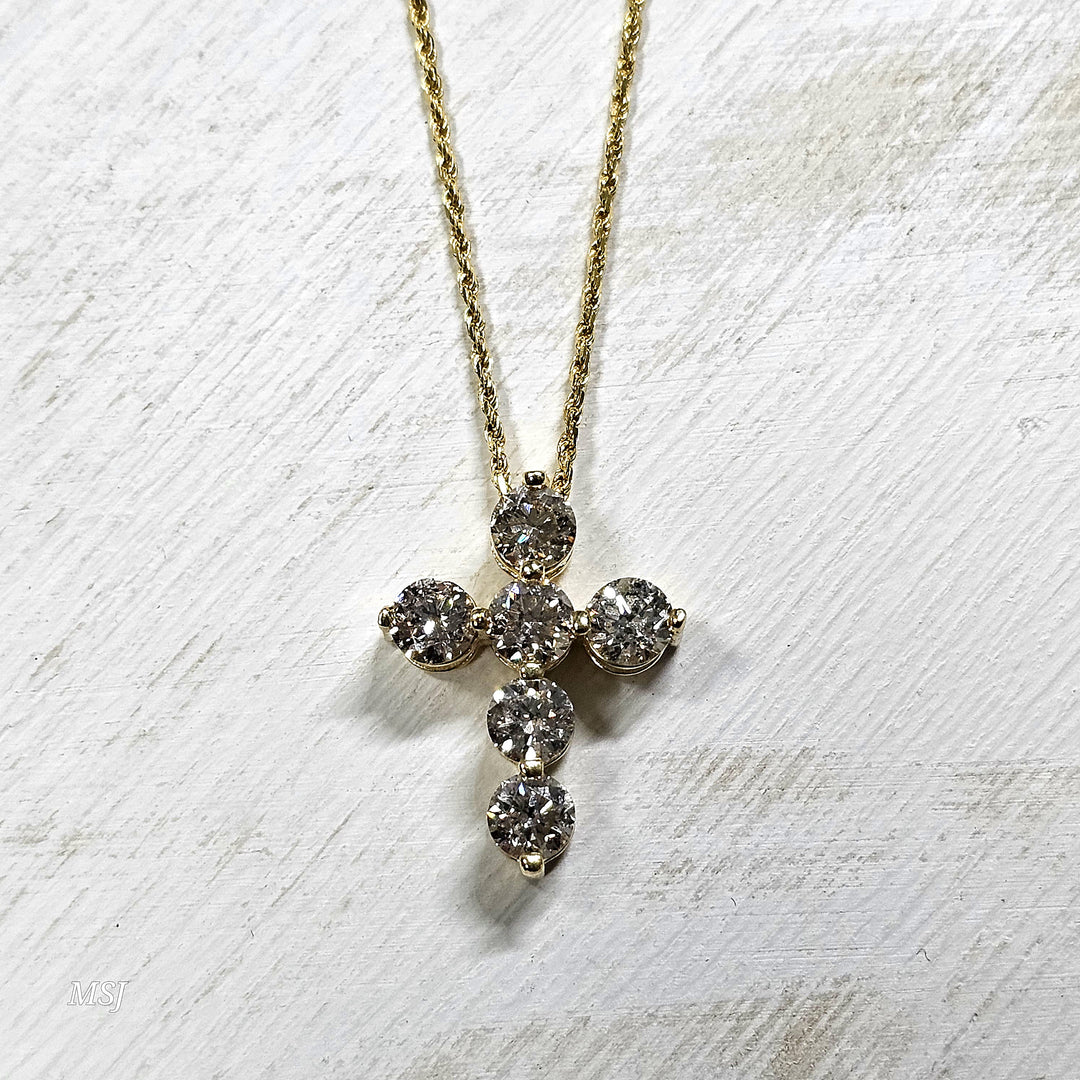 14k Yellow Gold 0.86 Ctw Diamond Cross Pendant