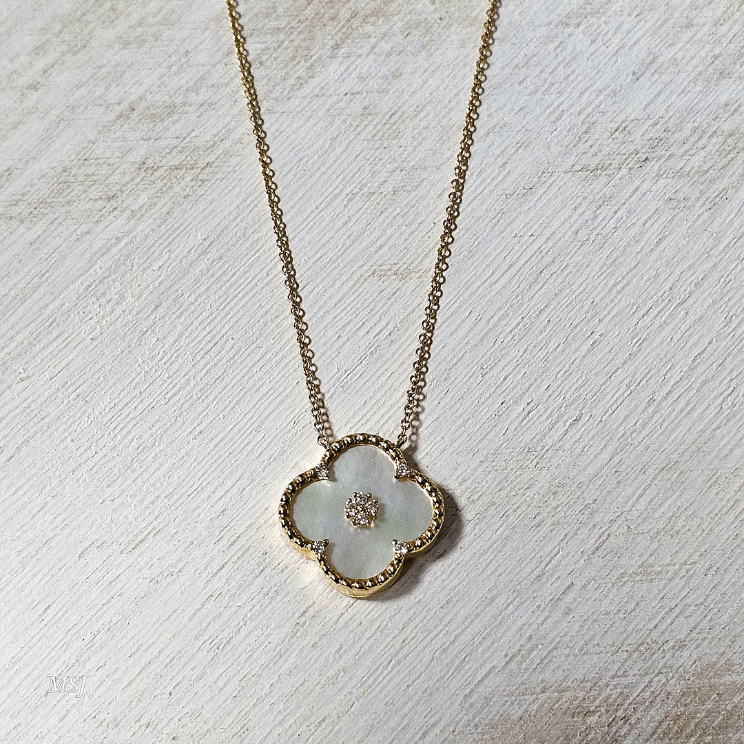 14k White Gold .06ct Transparent Clover Pendant