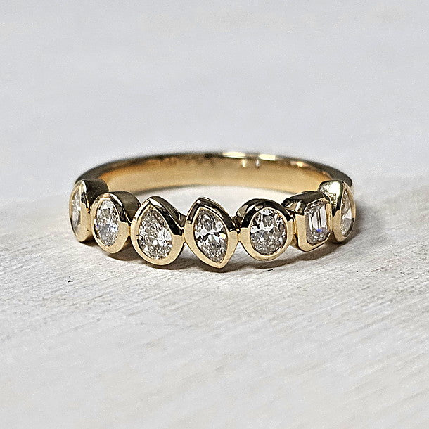 14k Yellow Gold 0.62 Ctw Multi- Shaped Diamond Bezel Set Band