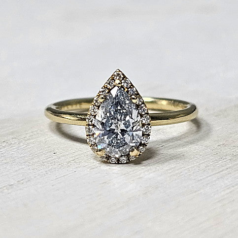 14k Yellow Gold 0.12 Ctw Diamond Halo set with 1.05 Ct Pear Lab Diamond Engagement Ring